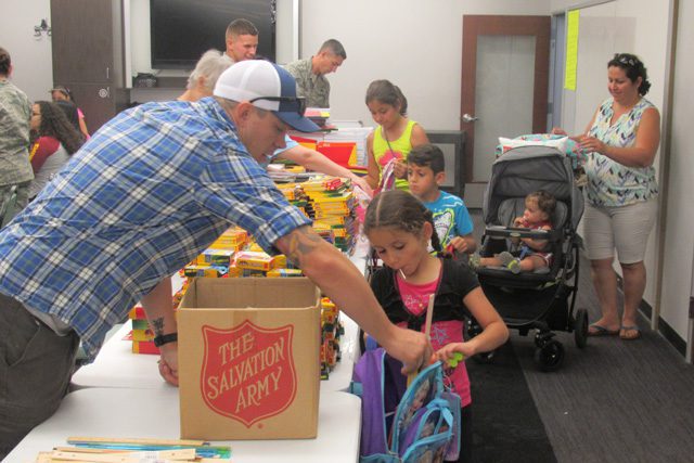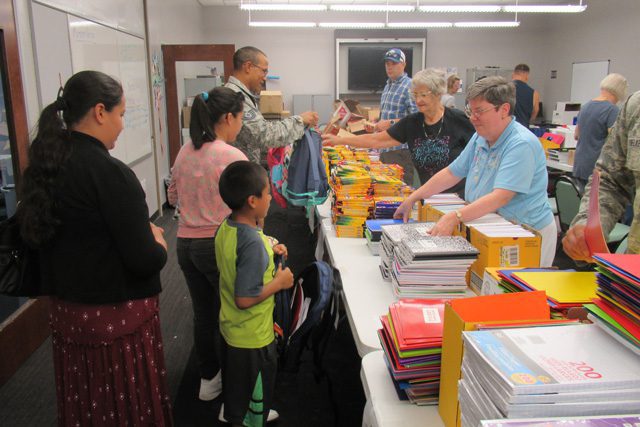 The same families came to the corps the next day to receive backpacks filled with school supplies. This was made possible by the annual Backpack SOS school supply drive in Arizona with Fry’s Food Stores, FOX 10 Phoenix, Bank of Arizona, 99.9 KEZ, and American Express, and funds given by generous community donors.