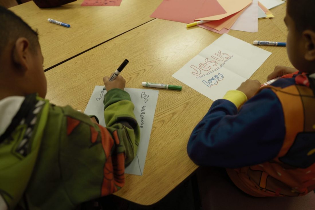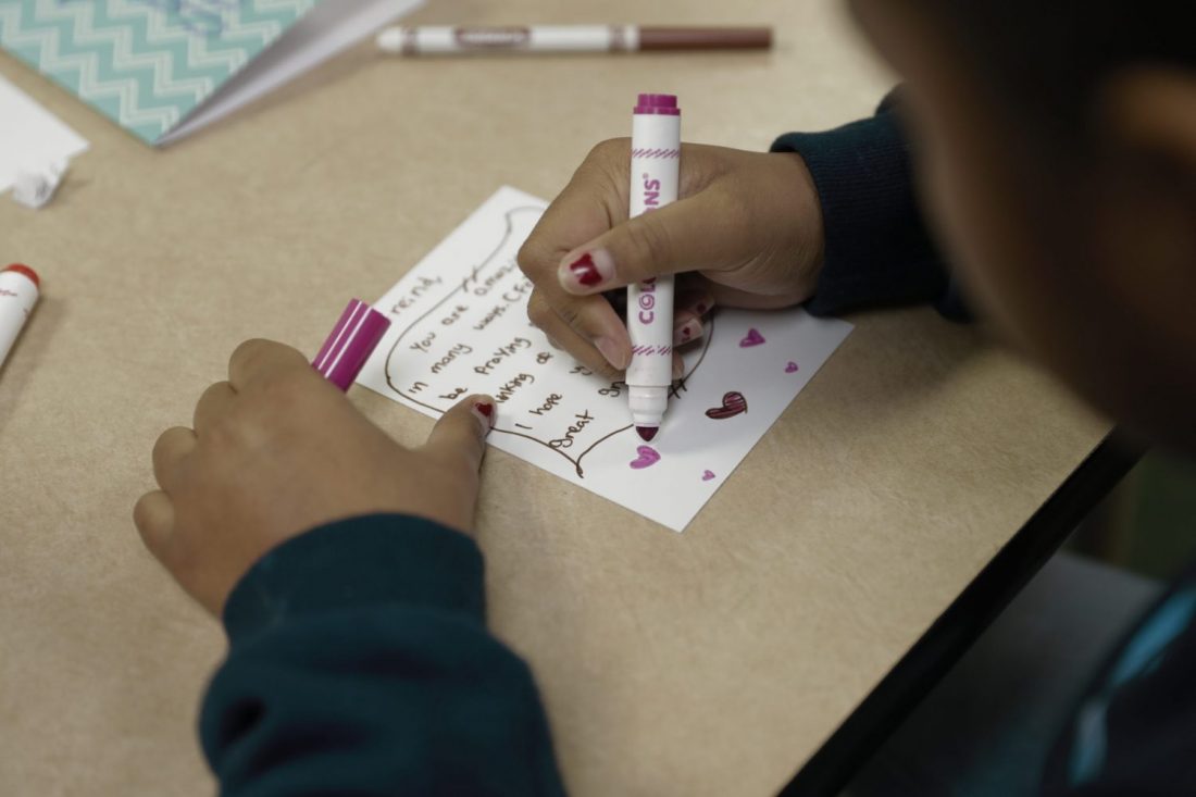 The kids were able to imagine how the recipients might feel upon getting a note or picture—an individual touch—with their food boxes. “I feel excited that people will get my card and will say, ‘Aww, that’s so nice,’” Ethan Hernandez said.
