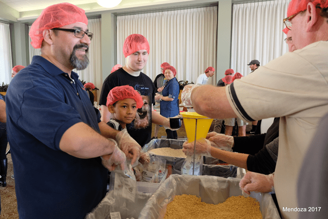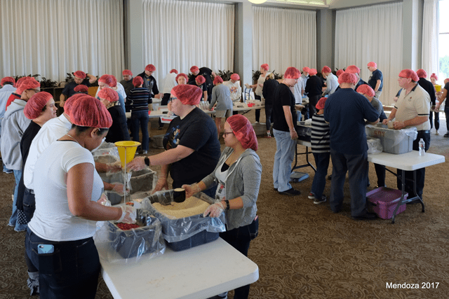 The packaged meals combine rice, soy, vegetables and a flavoring mix with vitamins and minerals. The nutritious meals are sent to in-country pre-school and school partners in 74 different countries to ensure that the meals change lives by promoting education and improving students’ health and nutrition.