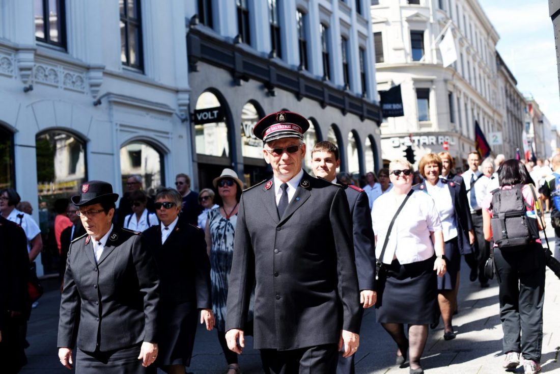 At a women’s breakfast the following day, Rosalie Peddle was interviewed by Commissioner Vibeke Krommenhoek, territorial president of women’s ministries in the Norway, Iceland and The Færoes Territory. They later joined Salvationists and friends from across the Nordic countries in a march of witness through Oslo city center.