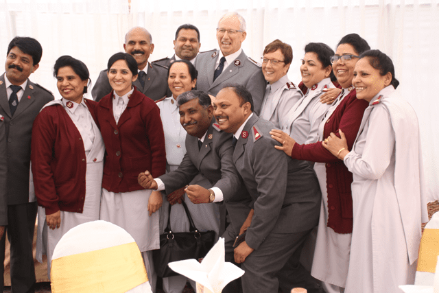 Prior to a meeting with the Territorial Strategy Council and a visit to the Training College, the Peddles went to the Shantinagar, a village started by The Salvation Army 100 years ago. The meeting in the village had to be held outside of the corps building as the 2,000 people attending could not be accommodated inside.