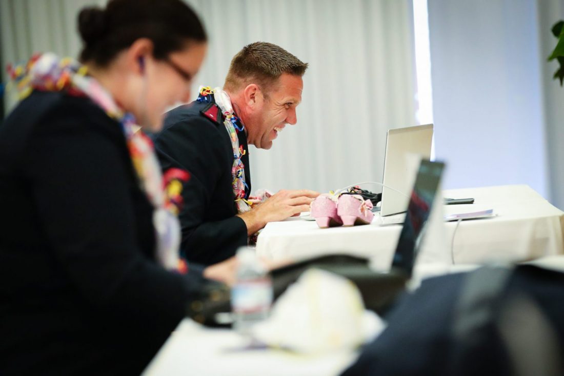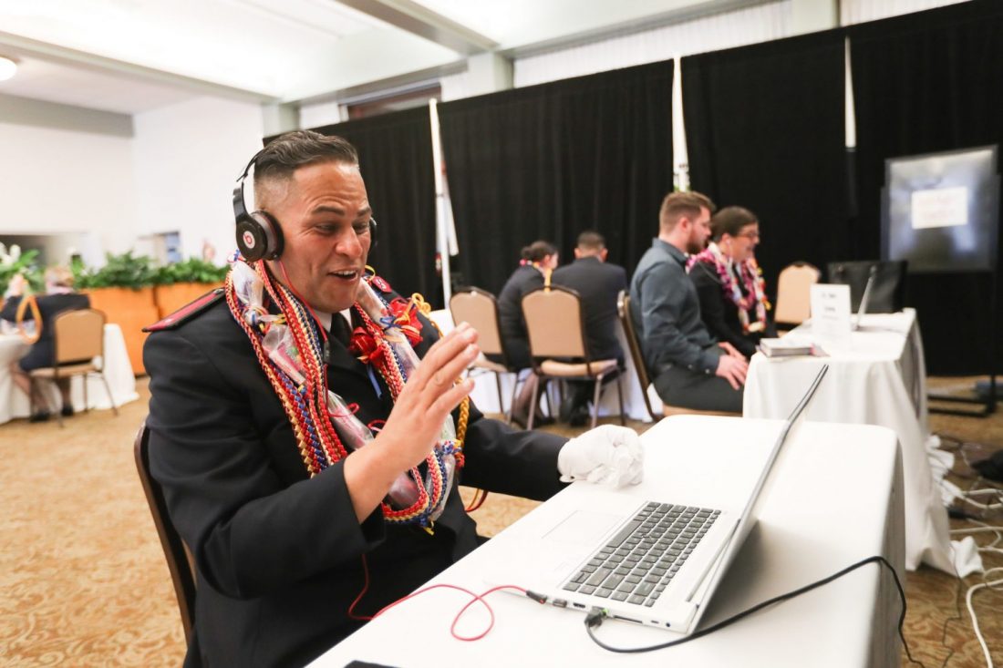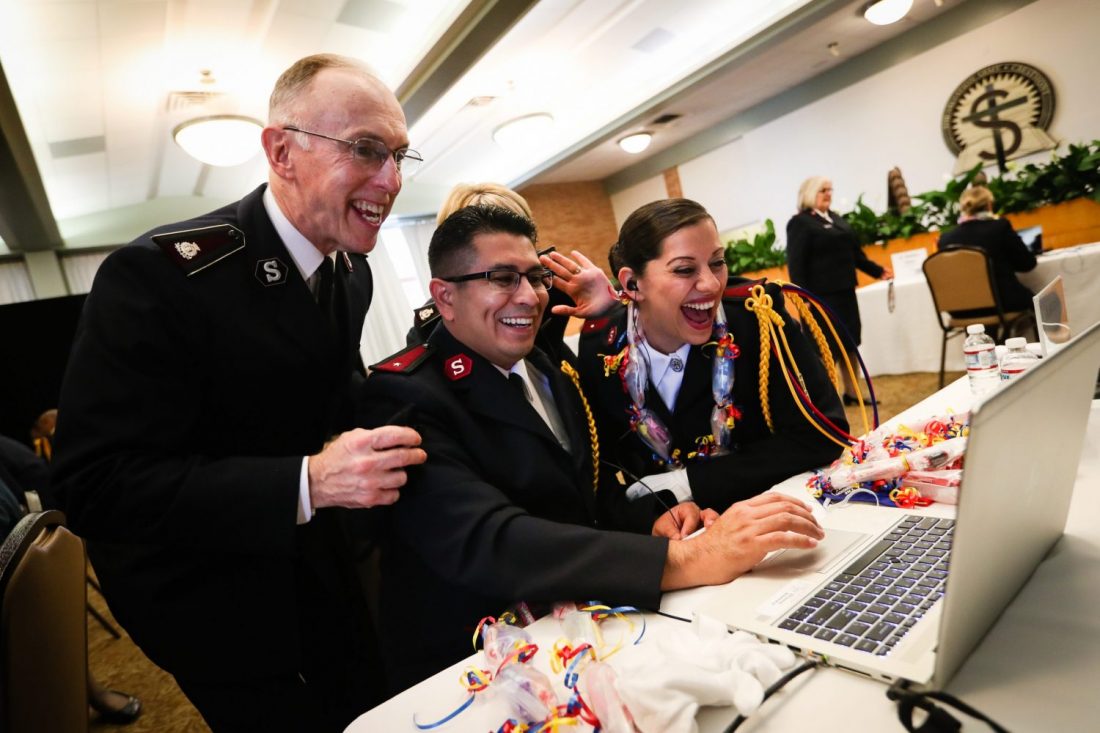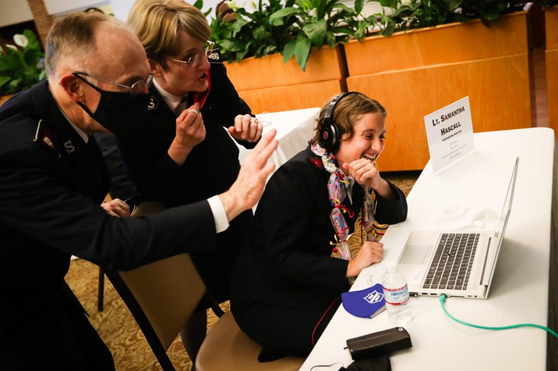 Each lieutenant family had its own Zoom conference room where Salvationists and friends logged in to wish them well on the next steps of their journey. In Lieutenant Paul Chisholm’s room, he shared his daughter Chloe’s one request for their future home—snow. Intermountain Divisional Commanders Majors Cindy and Mike Dickinson promised lots of snow for Chloe in Fountain Valley, Colorado, where Chisholm was appointed as Fountain Valley Corps Officer.