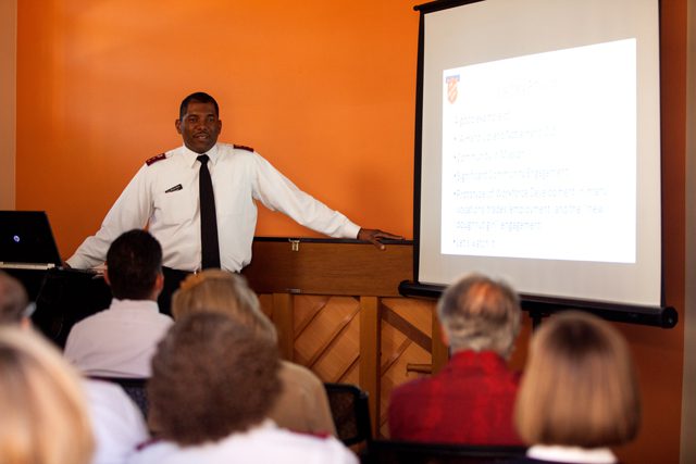 The Community in Mission conference, held Sept. 30-Oct. 1 at the Tustin Ranch Corps in Southern California, brought together almost 350 Salvationists to consider what The Salvation Army is in today’s world, looking at its evolution over 151 years and its place in church history with the goal of reviving the Army as a missional movement–not by doing what the Army did in the 19th century but by implementing time-appropriate strategies.
