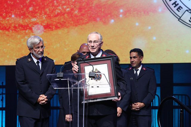 Territorial Commander Commissioner Paul R. Seiler presented two Certificates in Recognition of Exceptional Service. The first was given to David Brooksbank, long-time corps sergeant-major (CSM) at the Chicago-suburban Norridge Citadel, one of the territory’s largest and most innovative corps. He spoke of his reliance on prayer, saying: “Time spent in prayer is crucial in order to remain passionate about bringing Christ to the people and the people to Christ.” The second went to Major Richard Justvig for his post-retirement service as CSM at Gateway Citadel Corps in St. Louis, Missouri, and his role in developing a vital program of healing and restoration for former officers.