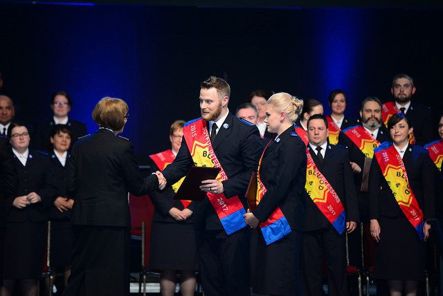 A highlight of the weekend was the commissioning and ordination of 19 new Salvation Army officers. In his message, the General encouraged Salvationists to actively engage with the world. “We are not called to simply worship in this place,” he said. “The world needs a generation of Salvationists who will stand up in their communities to make a difference.” In direct response to the General’s challenge, six people publicly declared that they had answered God’s calling to be Salvation Army officers.