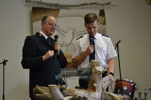 In the Sunday meeting, members and friends of Klaipeda Corps, which opened just over 15 years ago, sang the Founder’s Song, ‘O Boundless Salvation!’ in Lithuanian for the first time. The General challenged the congregation not to be scared when faced with impossible situations, but to trust God, for whom nothing is impossible. He affirmed his belief that The Salvation Army is called to expand God’s Kingdom in Lithuania and that everyone present was called to be a part of this.