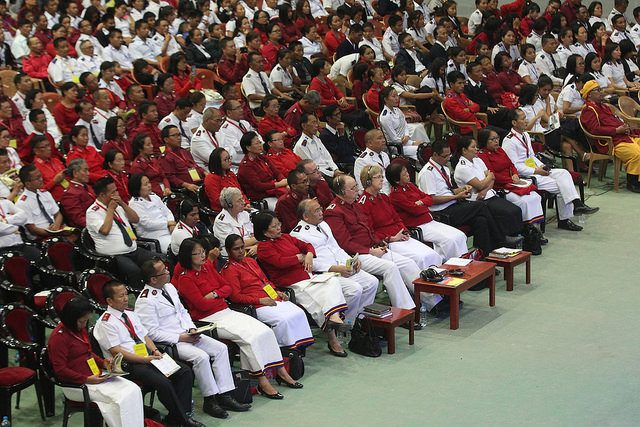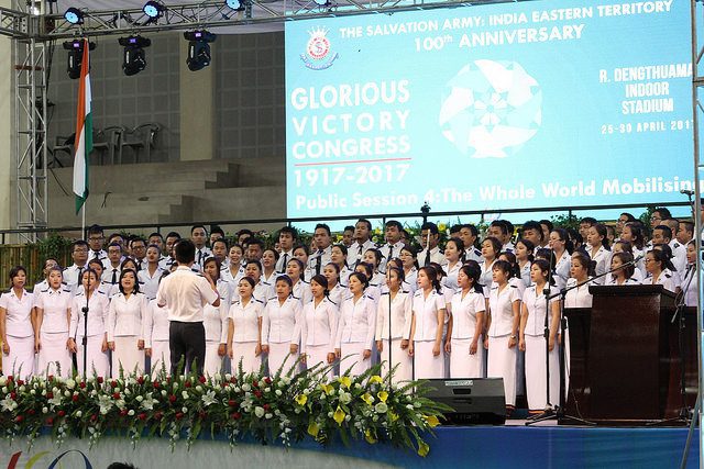 All public sessions were held at R. Dengthuama Indoor Stadium, Mualpui. By the final day, the total attendance topped 20,000 people, making this the largest event in the history of the territory. Officers and soldiers from Australia Eastern Territory, India National Secretariat, Myanmar Region and India South Western Territory attended, along with India Eastern Salvationists and friends. One color sergeant from Saikawt Corps even traveled eight days by bicycle to attend the meetings.