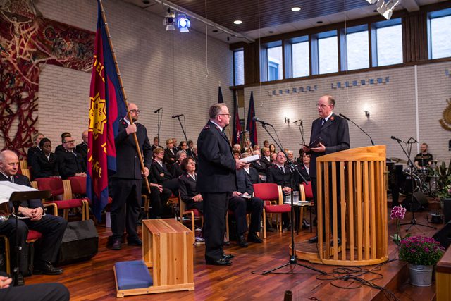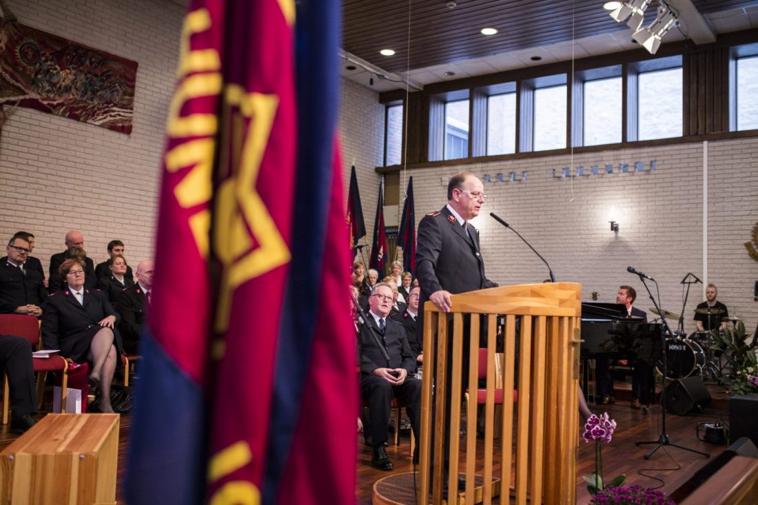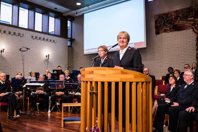 General André and Commissioner Silvia Cox, World President of Women’s Ministries, traveled to Oslo, Norway, to install Commissioner William Cochrane as leader of the Norway, Iceland and The Færoes Territory during a Sunday morning meeting at Oslo Temple Corps.