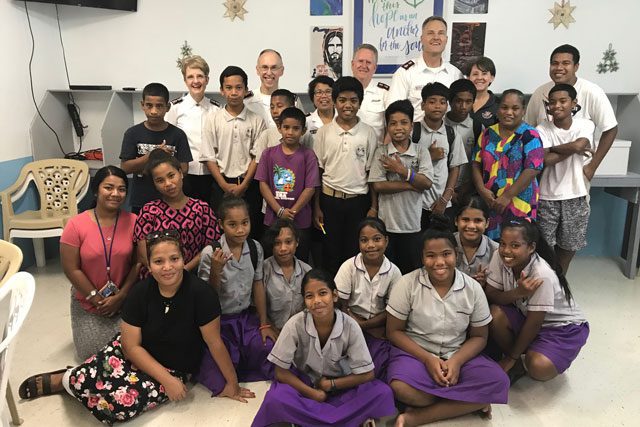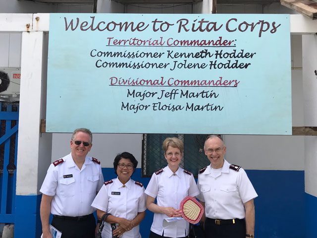 Territorial Leaders Commissioners Kenneth G. and Jolene K. Hodder traveled to the Central Pacific Ocean—the Marshall Islands, Federated States of Micronesia and Guam—Oct. 25–Nov. 5, continuing their “lightning” visits of The Salvation Army’s ministry in the Western Territory. Hawaiian and Pacific Islands Divisional Commanders Majors Jeff and Eloisa Martin accompanied them on their tour.