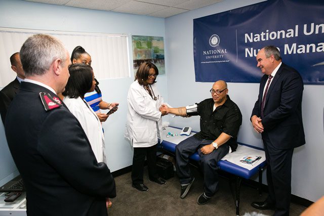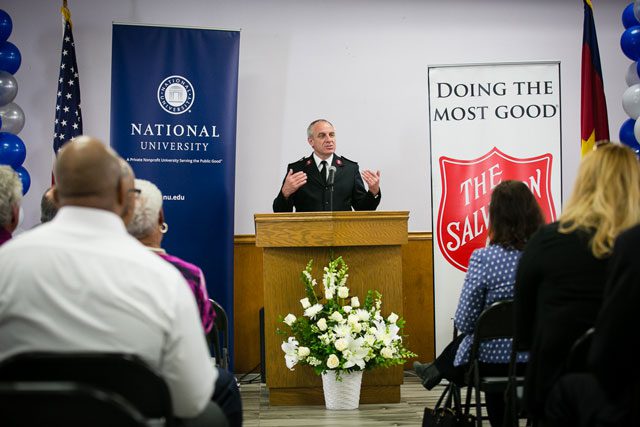 “This is a perfect partnership because we want to serve people without discrimination, in the community who are struggling,” said Lt. Colonel Kyle Smith, Southern California Divisional Commander. “We care about people, [National University] cares about people, we all want people to be healthy. This is a basic human right, and the fact that we can come together really makes a difference for those who need it most.”