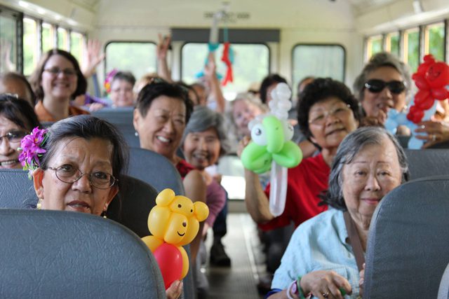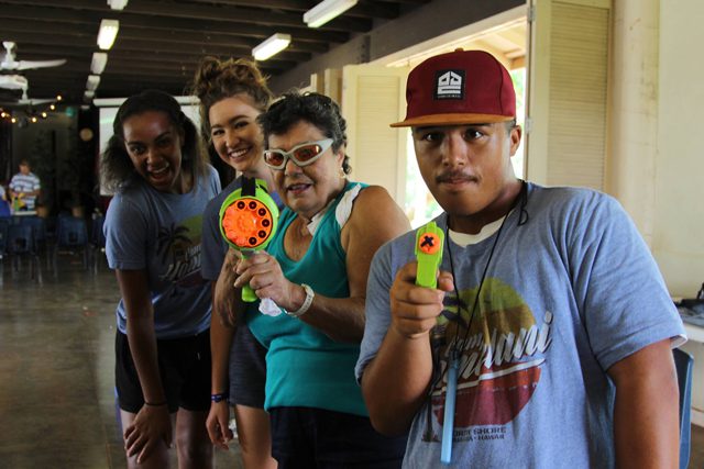 When a buzzer goes off, Florence and Daisy move to their next activity, Space Bingo. “I’m great at Bingo–it’s a game we all enjoy,” Florence said, walking ahead to save a seat for Daisy. “Daisy and I go way back. We used to be neighbors at one point. Now we play ukulele at the Mo‘ili‘ili Community Center and wait until we get our invitation to attend Kūpuna Camp. It’s the highlight of the summer for us. We even get goodie bags.”
