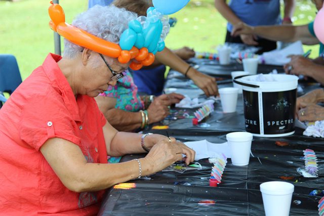 Kūpuna Camp is a half-day retreat that takes place at The Salvation Army Camp Homelani on Hawaii’s North Shore. In the island culture, a kūpuna is an honored elder who has acquired enough life experience to become a family and community leader. Seniors in various communities across O‘ahu come to Kūpuna Camp to enjoy fellowship, arts and crafts, games and a luncheon. This year’s theme, “Blast Off,” infused each activity with space-themed colors and galaxy patterns.