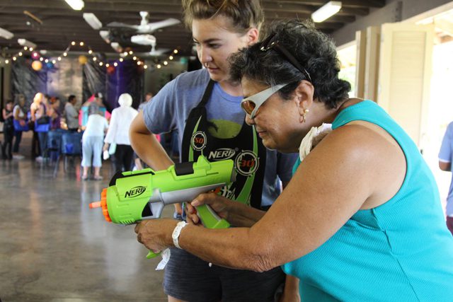 Each senior camper receives a bag of useful items such as snacks, blankets and socks. Florence, Daisy and other campers rotate around the campus, playing skee ball, getting free balloon hats and shooting down aliens with Nerf guns. “Every time I come, [there’s] something new to do,” Daisy said. “That’s why we sign up every year: they keep us entertained, there’s fellowship, and get all [kinds of] activities.”