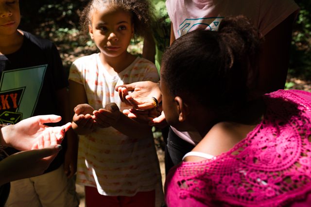 Smith-Ruiz and Goldentyer quickly settled on their number one rule for the program—leave your bright new tennis shoes at home. Part of the initiative’s appeal would be its very hands-on approach, and to that end, for their first collaboration, TLC put together three, 2-hour programs for Army day campers at Raleigh’s nearby Swift Creek Bluffs Preserve. The first half of the program consisted of a guided nature walk, followed by dips in tidal pools as well as activities that sent campers scurrying around the nature preserve, overturning logs and using small nets to identify the animals that help create the local ecosystem and to learn how protecting their fragile environment helps those animals thrive. But just as impressive as the conservancy’s work stewarding our natural resources was its approach to working with kids, Smith-Ruiz said.