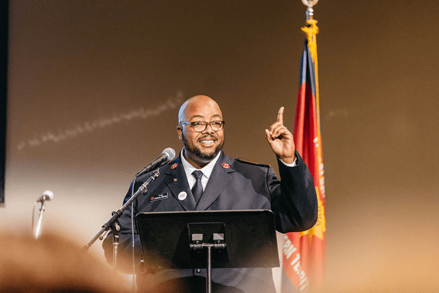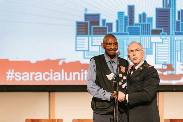 Before his call to action, Hodder thanked Smith, Major Keilah Toy and Priscilla Santos for making the conference a reality. He then called Alvin to the stage to share his powerful story of how God’s love allowed him to overcome a hatred of all white people that came from a personal encounter with the Ku Klux Klan many years ago.
