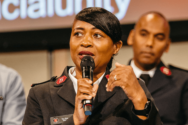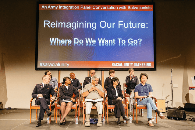 The session ended with Barnes asking each panel member to finish a sentence about what the envisioned Salvation Army would look like. Answers included “be authentic,” “be real,” “be intentional in not stereotyping.”