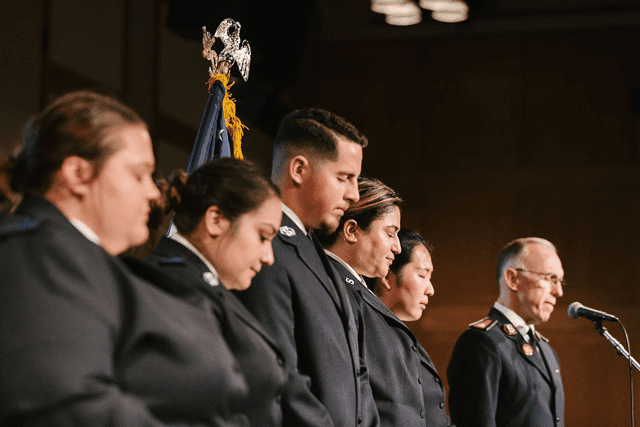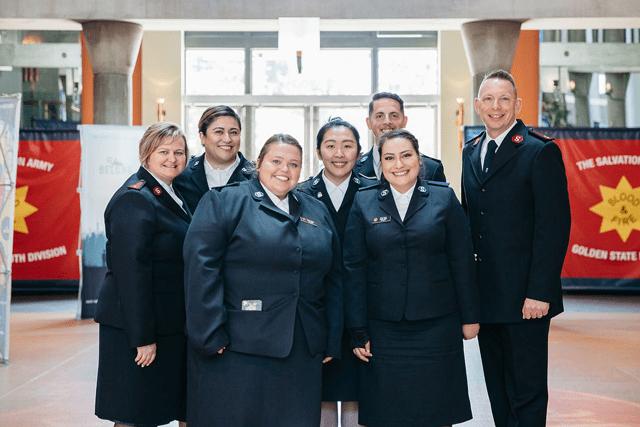 Hodder then installed and prayed for the territory’s first social justice sergeants: Eunice Chen (San Gabriel, California, Corps), Jordan Sargent (Yakima, Washington, Corps), Emily Reed (Tacoma, Washington, Corps), Brian Reed (Tacoma Corps) and Sarah Cordero (Seattle White Center Corps). Each one has a specific issue they plan to address in their community.