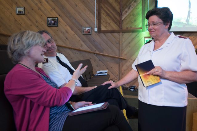 The days at camp started with Scripture and prayer with guests Commissioners Philip and Patricia Swyers, former Western territorial leaders who led the first WBC during their tenure. The morning sessions began with worship in song led by Lt. Colonel Lisa Smith, followed by Bible teaching from Lt. Colonels Vern and Martha Jewett, special guests from the Southern Territory. Delegates then gathered in small groups to discuss the day’s lesson.