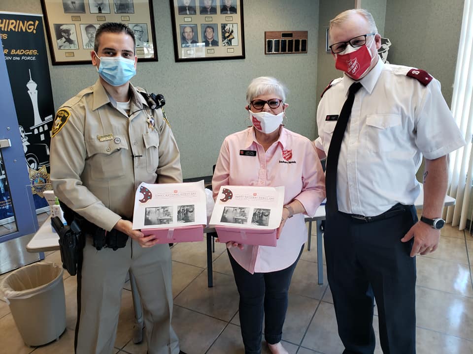 In Southern Nevada, the Army delivered doughnuts to Las Vegas Fire and Rescue Station 42 and to Las Vegas Metro Police Department Northwest Area Command.