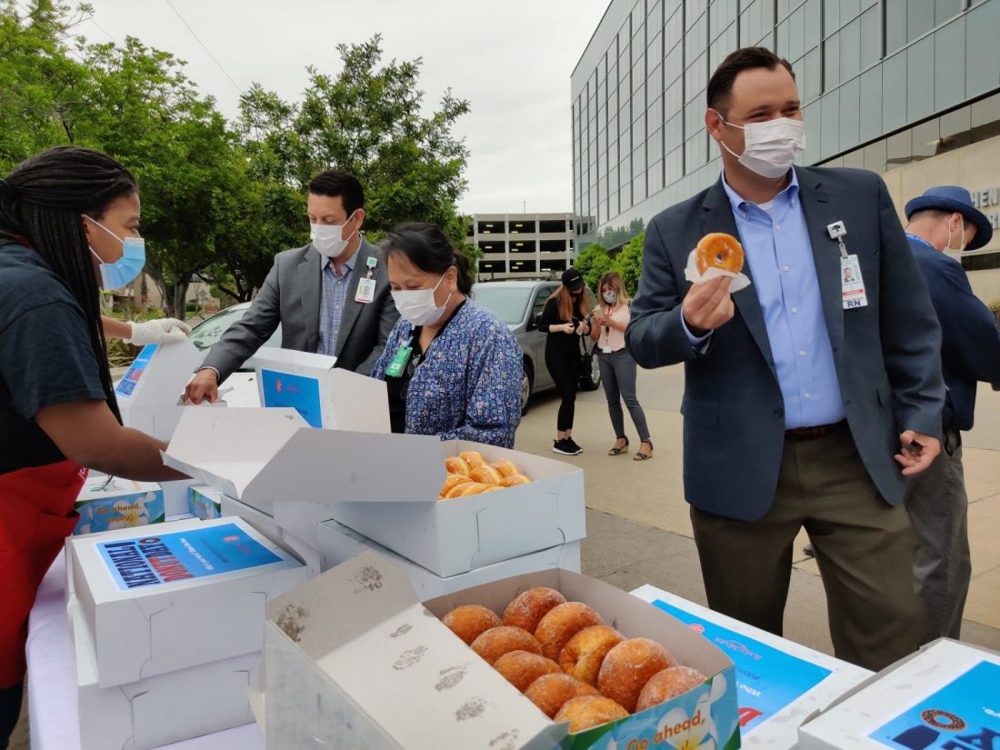 The Salvation Army Echelon of Sacramento honored medical workers for their efforts during COVID-19 by delivering 1,800 Krispy Kreme doughnuts to South Sacramento Medical Center and Sacramento Medical Center. The effort marked Echelon’s third year delivering doughnuts to first responders, and its largest one yet.