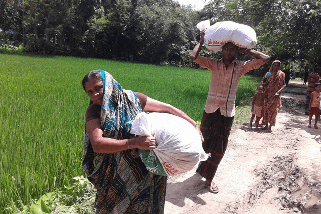 An assessment showed that the most urgent need was for food, so the team in Jessore, with a local government official, obtained and distributed 250 packets of food relief. Each pack contained rice, dal, salt, oil, flat rice, molasses and a saline treatment tablet.