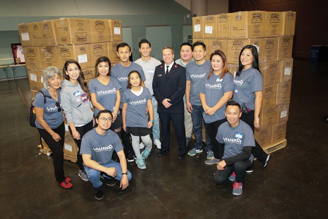 Meanwhile in California, The Salvation Army in Silicon Valley, led by Silicon Valley Coordinators Majors Roy and Paula Wild, prepared 80,000 meals for the relief effort. The Salvation Army partnered with The Outreach Program to prepare the food packets, assisted by hundreds of volunteers from the Vietnamese National Association of Real Estate Professionals.