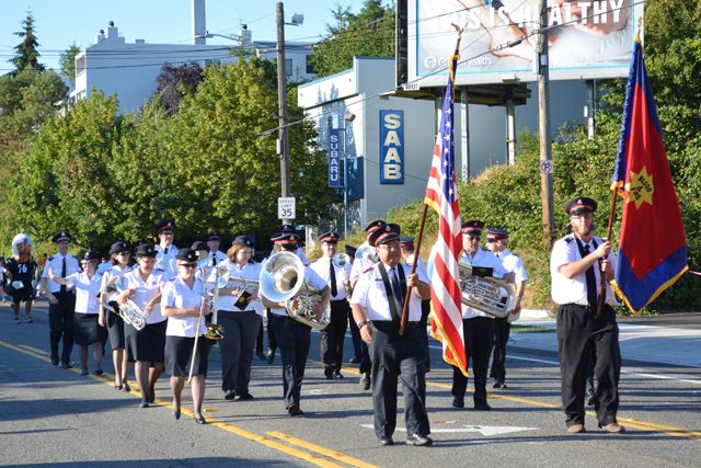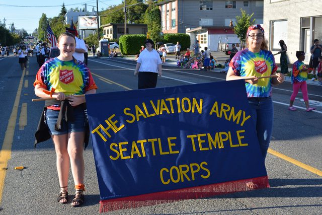 The Seattle Temple Band of The Salvation Army continued a tradition of more than 25 years, participating in the annual Greenwood Seafair Parade July 27. Seafair is Seattle’s iconic summer festival–a celebration that spans 10 weeks from mid-June through August. Events take place throughout greater Seattle, bringing neighborhoods together to celebrate community spirit.
