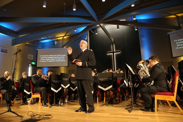 The TYB, led by Bandmaster Neil Smith, kicked off the celebration with “Fill the World with Glory,” a medley of Salvation Army classics by Kevin Larsson.