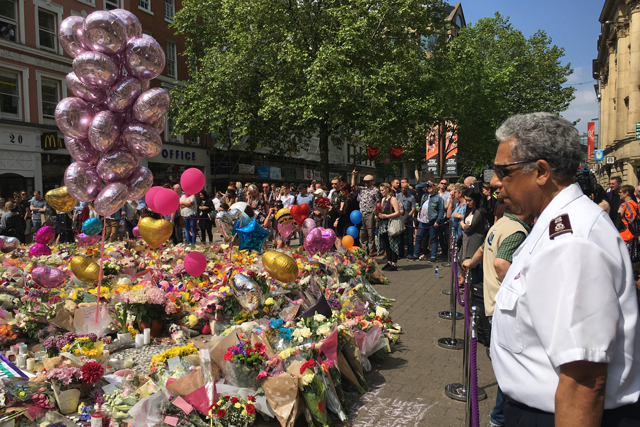 “Our hearts go out to the families and friends of those who have died, and our best wishes to those who are injured,” Clive Adams said. They joined thousands of people at a one-minute silence in memory of those who lost their lives in the attack, accompanied at the sombre occasion at the city’s usually-bustling Piccadilly railway station by Central North divisional leaders Majors Alan and Linda Watters.