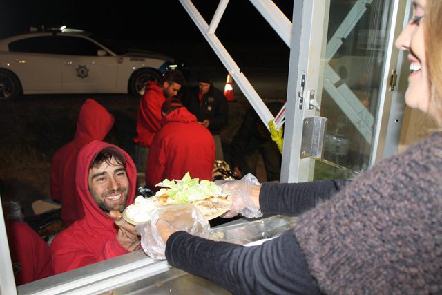 Volunteers served first responders well into the night on Oct. 3–feeding 700 pieces of chicken to over 400 people, along with hundreds of hamburgers and hot dogs. They finished up at about midnight, and in a few short hours had breakfast prepared.