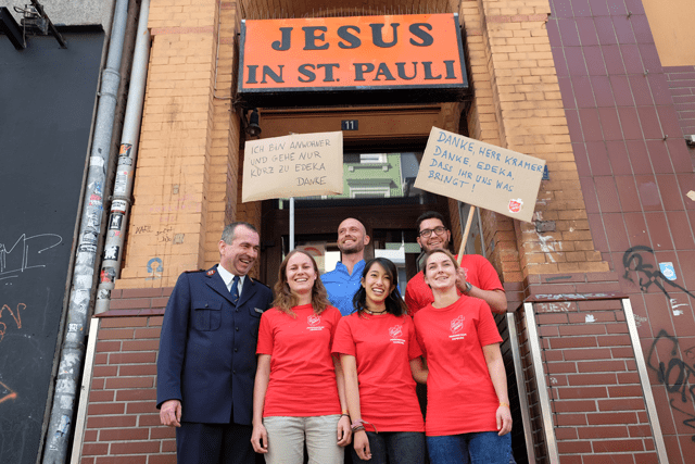 The corps in St Pauli also had an influence for peace while the G20 meetings were ongoing. Prayer gatherings and an open-air meeting outside the corps building led to positive encounters with neighbors, protesters, helpers, service personnel and clients.