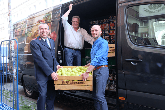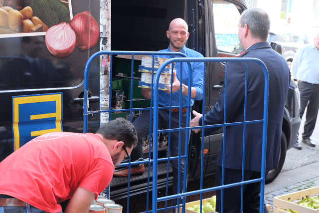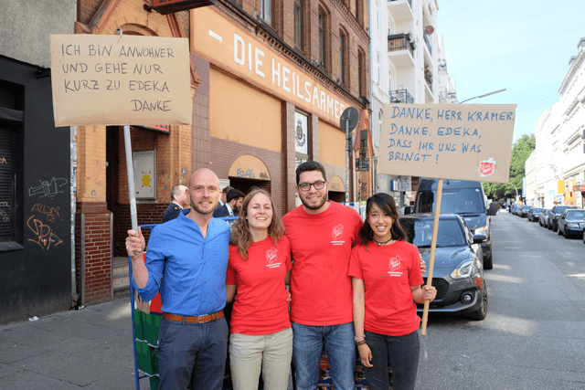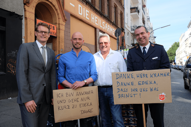 Kramer met with EDEKA representatives July 18 at The Salvation Army’s center as they delivered 250 pounds of coffee, 200 litres of milk, 250 cans of soup, 100 bars of chocolate, boxes of apples and bananas as well as some sanitary supplies for the homeless people served by the center. The meeting was covered positively by the German press and has been heavily featured on social media.