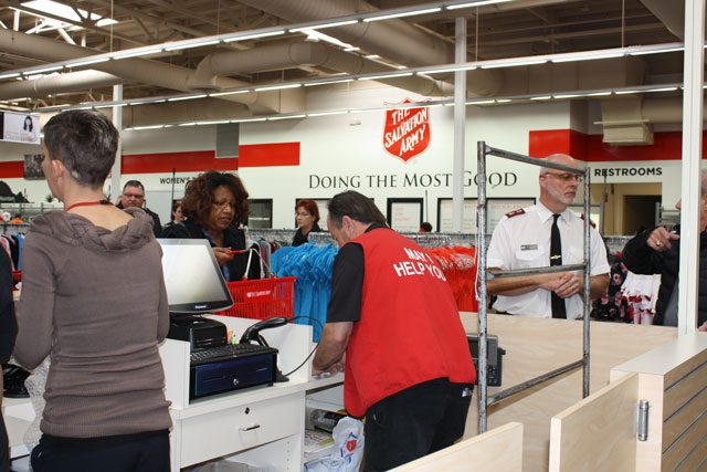 Hundreds of eager shoppers waited outside the doors in anticipation, as dozens of Salvation Army officers were joined by Chandler Vice Mayor Terry Roe for the ceremonial ribbon-cutting to officially open the store.